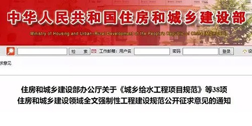 2月18日,住房和城鄉建設部官方網站發布《關于<城鄉給水工程項目規范>等38項住房和城鄉建設領域全文強制性工程建設規范公開征求意見的通知》。《通知》顯示,住建部組織中國城市建設研究院有限公司等單位起草了《城鄉給水工程項目規范》等38項住房